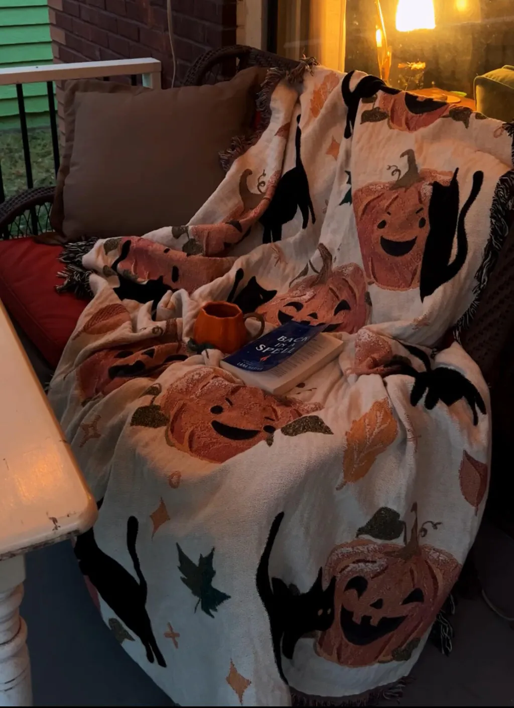 This playful blanket features a spooky mix of jack-o'-lanterns and black cats on an off-white background—perfect for adding a cute, Halloween-inspired touch to any space. Woven, not printed, for a lasting cozy texture that’s easy to care for.